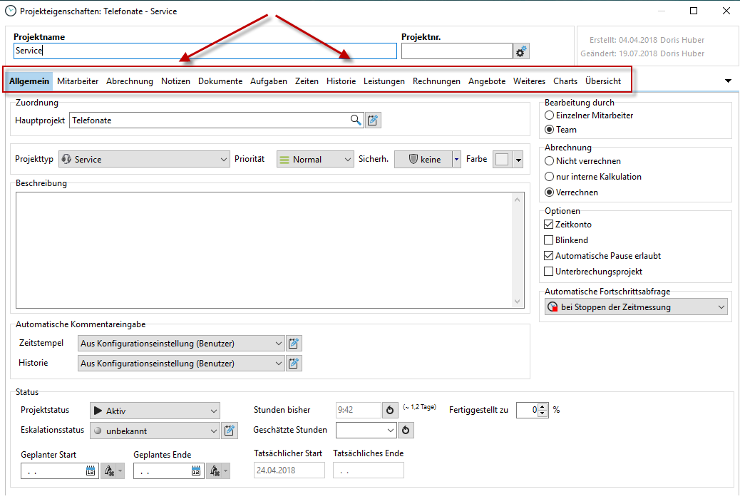 In den nachfolgenden Kapiteln finden Sie weitere Informationen zu den einzelnen Reitern in den Projekteigenschaften.