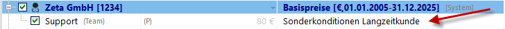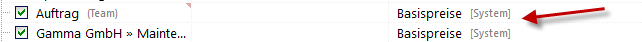 Im Projektmanager wird dies mit [System] hinter der Preisliste gekennzeichnet.