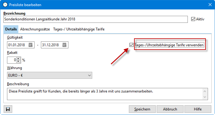 Auf die Option "Tages- / Uhrzeitabhängige Tarife verwenden" gehen wir im zweiten Bild ein.
