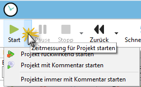 Wenn Sie einen Zeitstempel in Ihrer Zeitstempelliste markiert haben, können Sie das entsprechende Projekt dazu einfach per "Start" Knopf in der Zeitstempelliste starten.