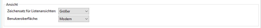 Ist Ihnen der Zeichensatz in den Listen zu klein, können Sie hier die Größe der Schrift anpassen. |