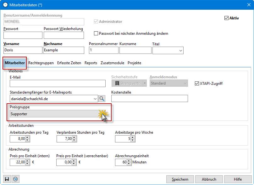 Letztendlich weisen Sie jetzt noch jedem Mitarbeiter die entsprechende Preisgruppe in der Mitarbeiterverwaltung zu.