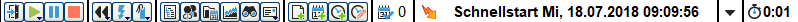 Über das Schnellstartprojekt können Sie sofort eine Zeitmessung durchführen, ohne vorher einen Kunden oder ein Projekt ausgewählt zu haben. Nach dem Klick auf die Schnellstart-Option erscheint folgende Anzeige in Ihrer Zeitleiste: